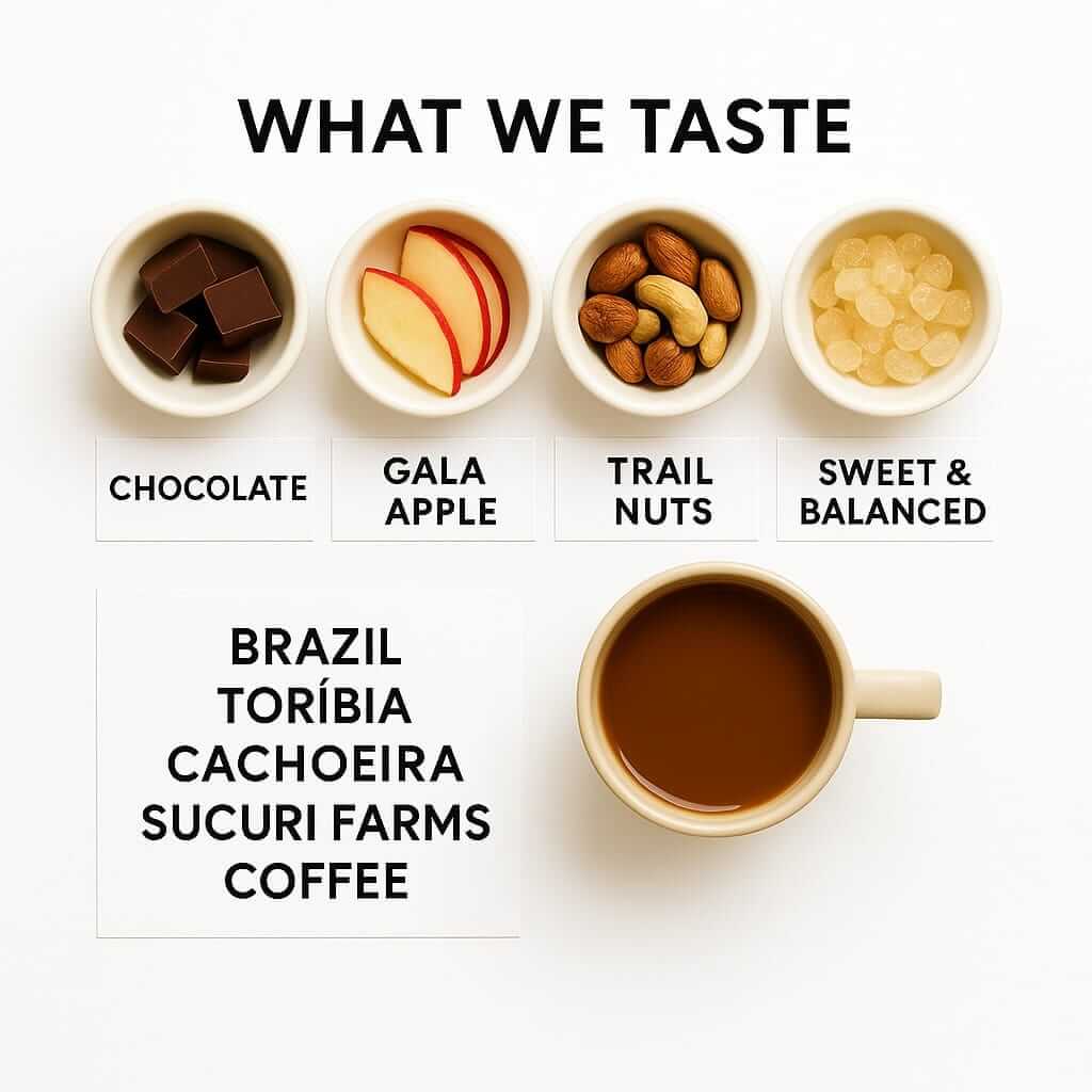 Expect a beautifully balanced cup — smooth yet complex, clean yet indulgent. Brazil Toribia opens with soft chocolate aromatics, followed by bright notes of Gala apple and subtle trail nut sweetness. Its medium acidity provides a lively lift without sharpness, while the finish remains crisp, balanced, and delightfully sweet.
